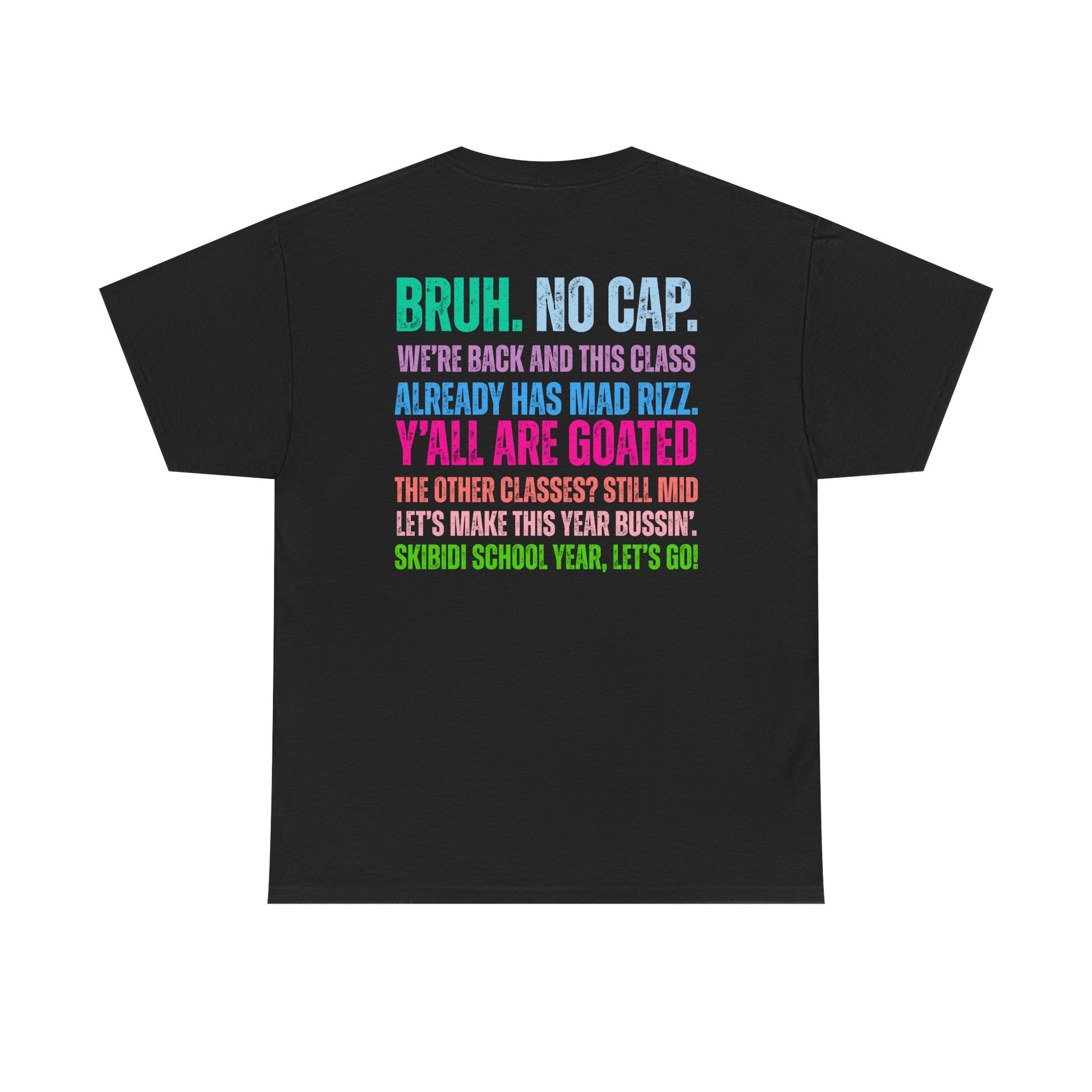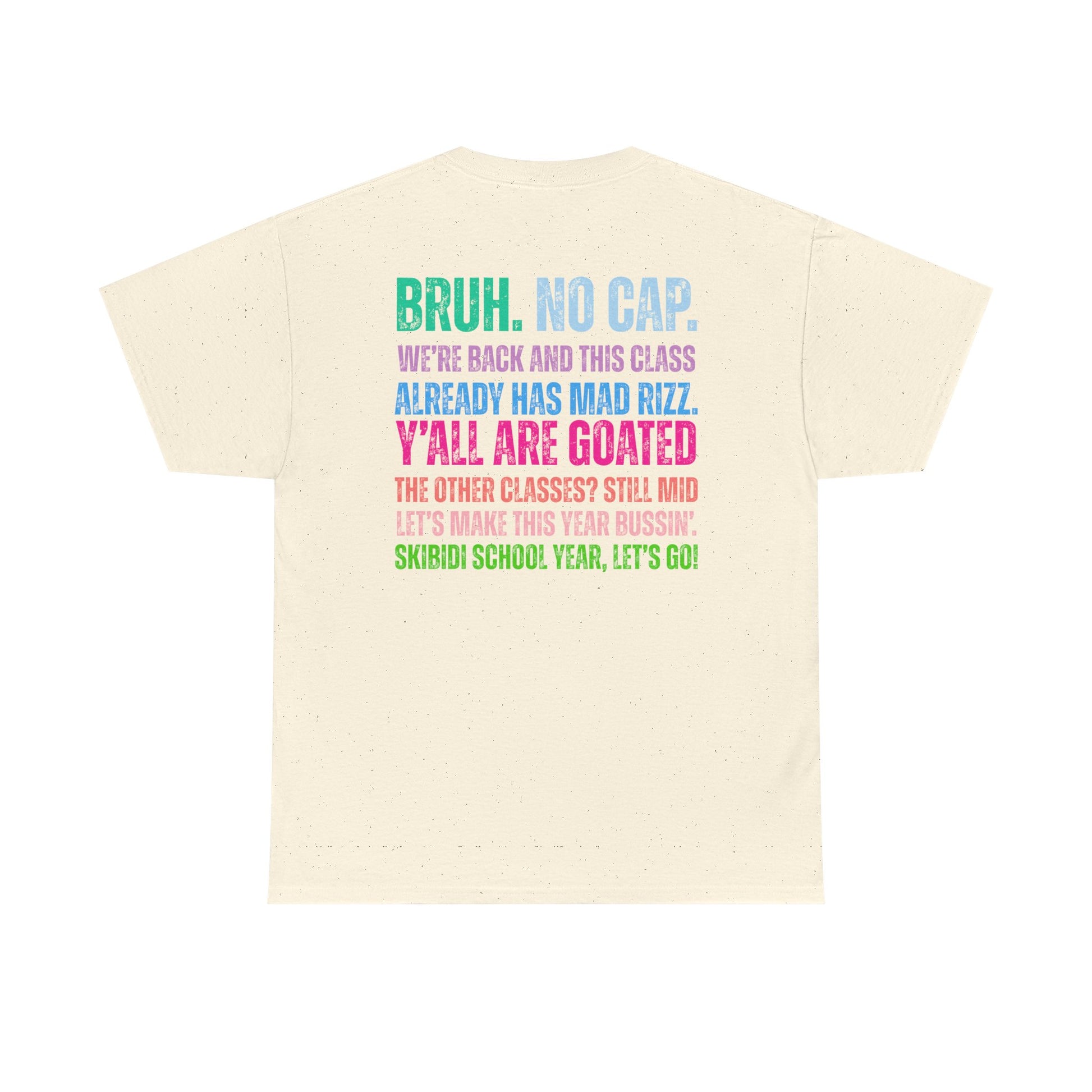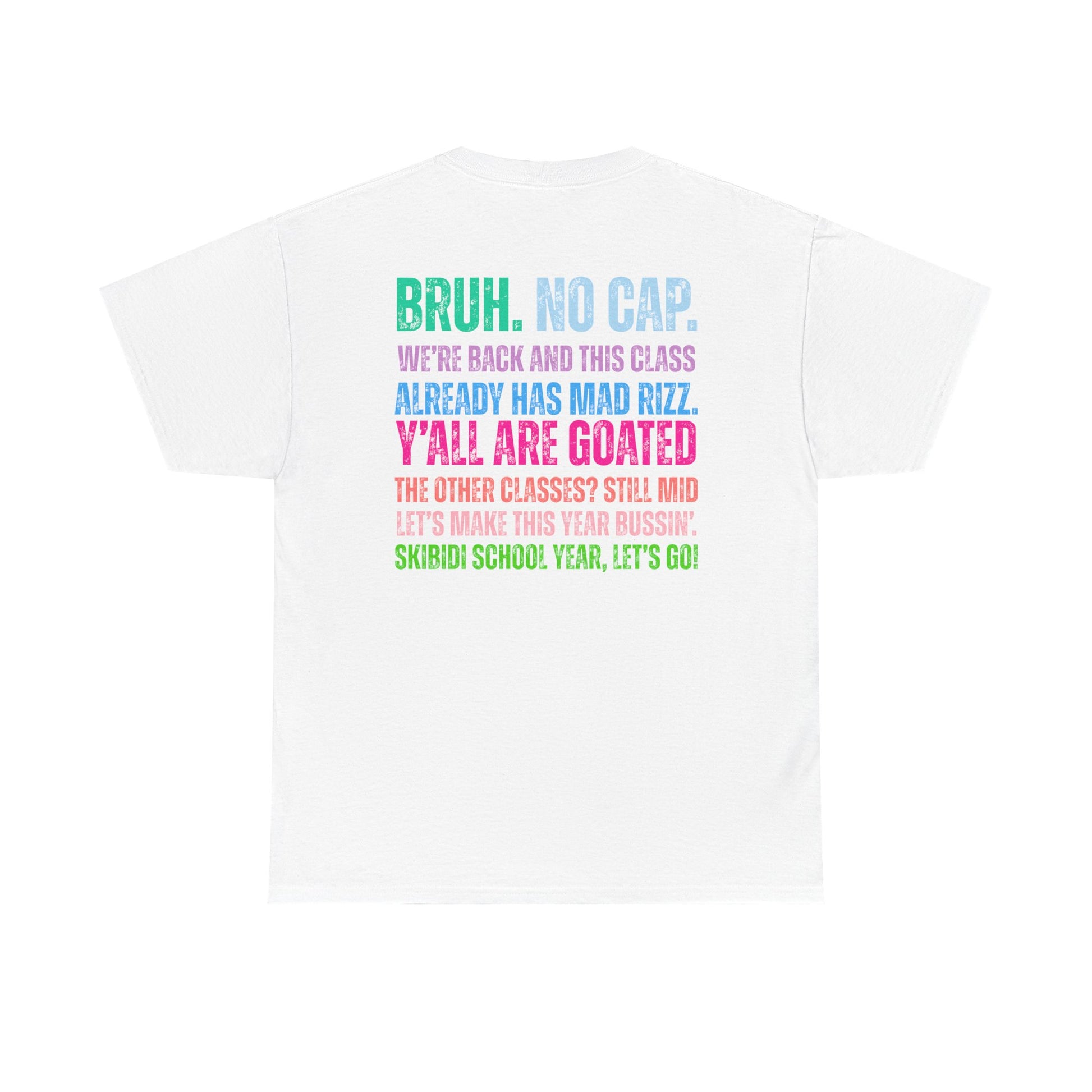 Start the school year with all the drip and rizz your class deserves! This bold and colorful graphic tee is perfect for students who want to make a statement from day one. Featuring trending Gen Z slang and a playful challenge to other classes, it’s a must-have for anyone who knows their class is goated.
