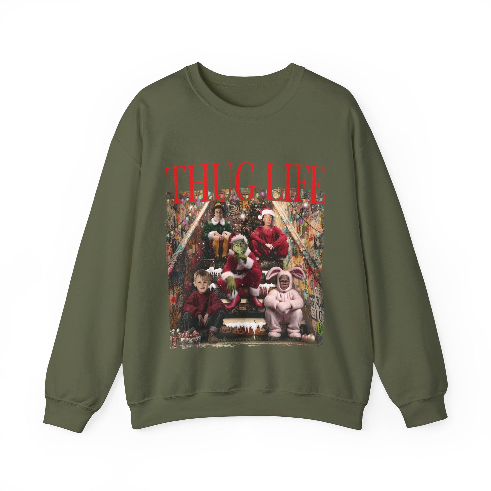 Thug Life Christmas Sweatshirt | Funny Grinch Family Photo Ugly Holiday Sweater